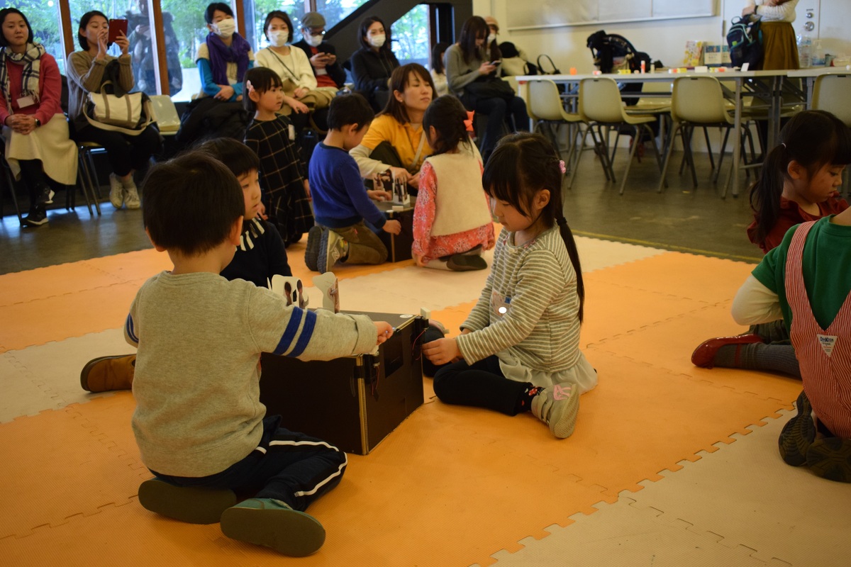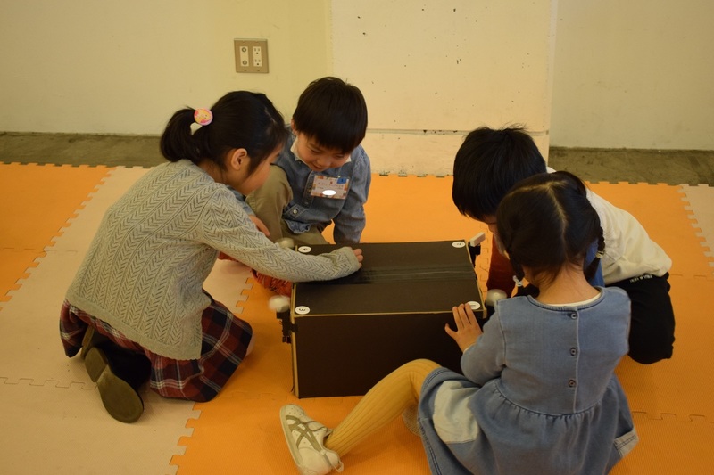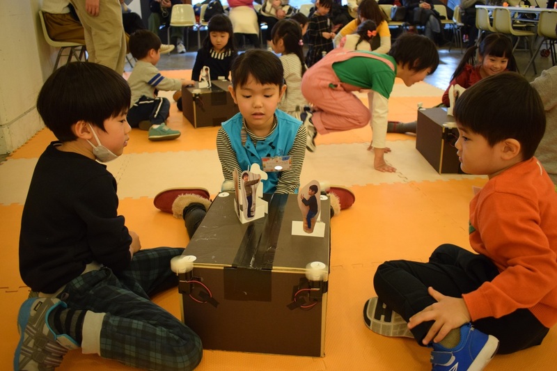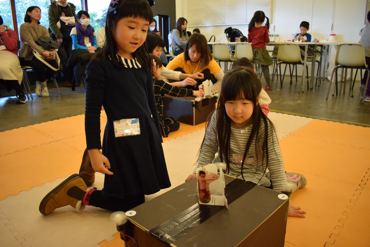 モーターから伝わる振動で力士を動かすという体験をしてもらいました。