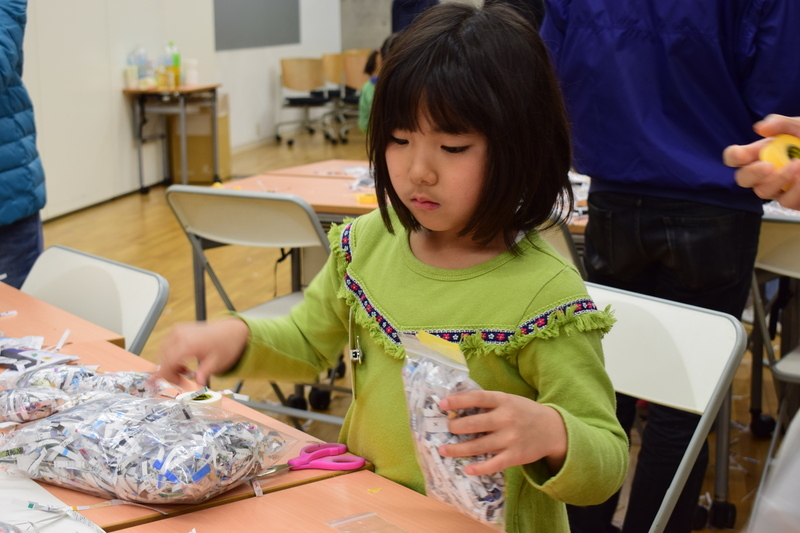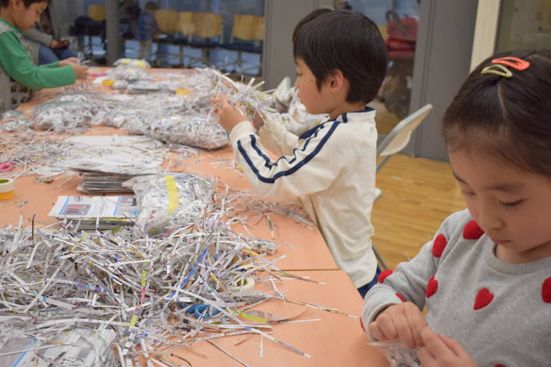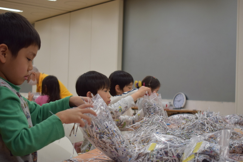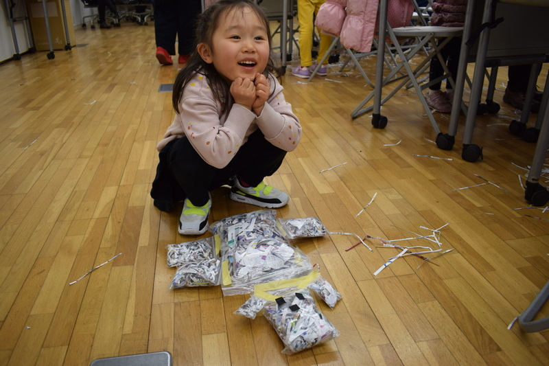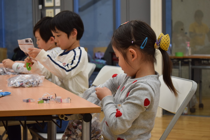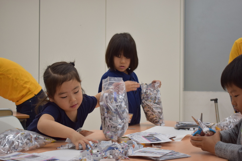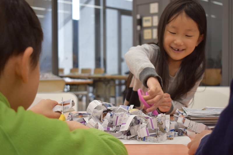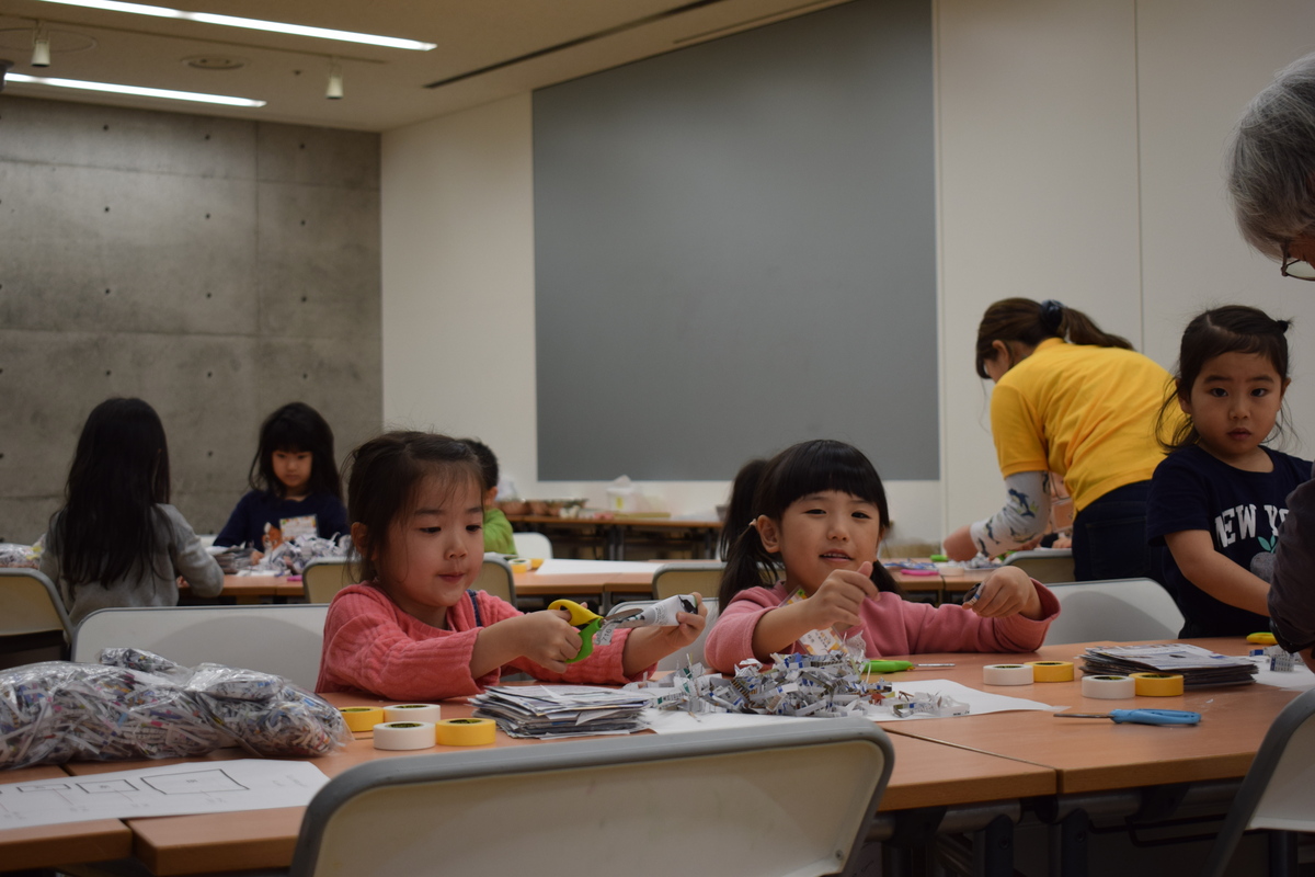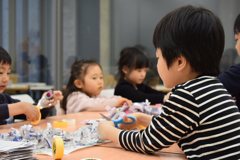 もっとつめよう、とさらに紙を切るキッズ研究員も。