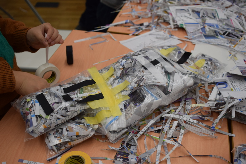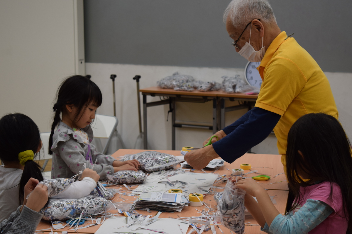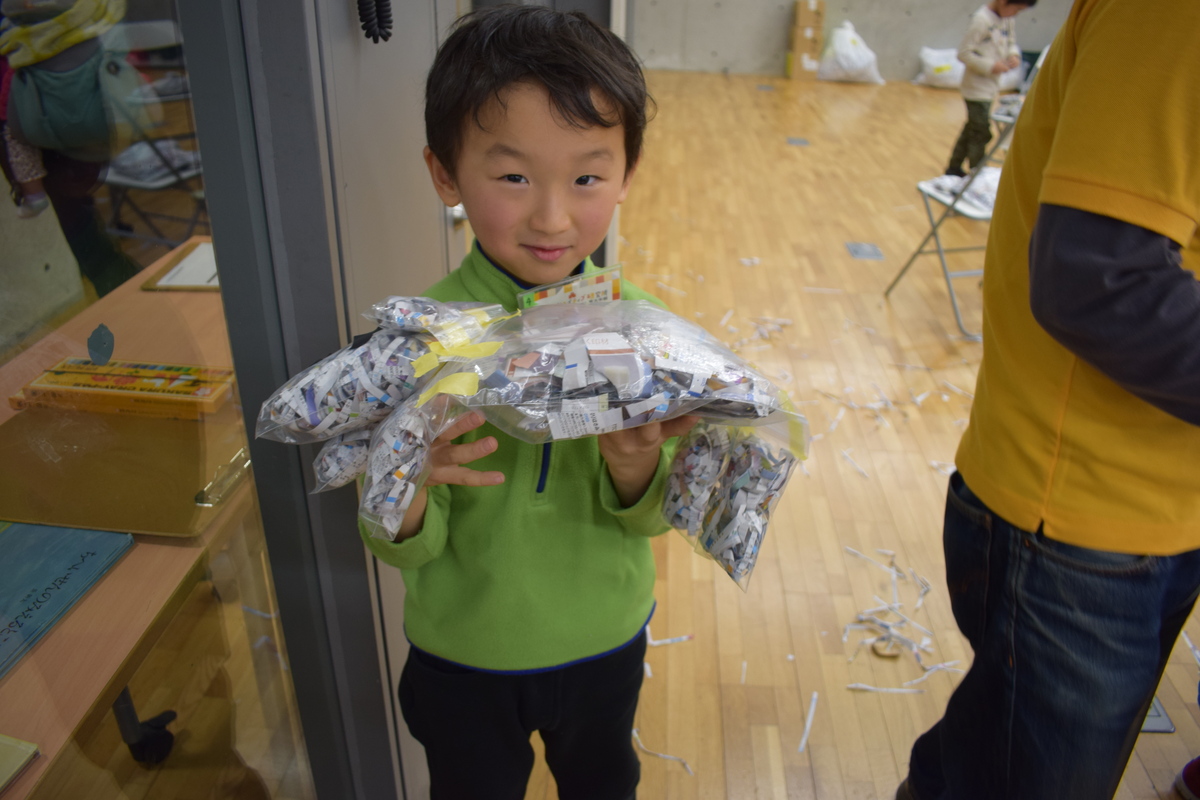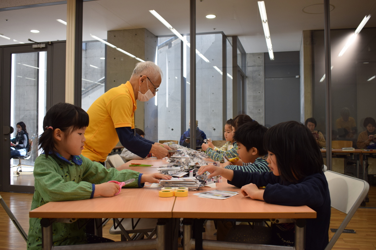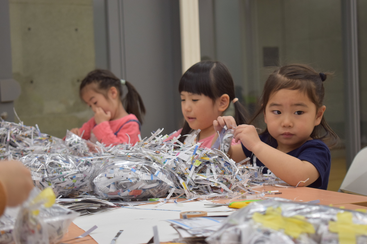 もっとつめよう、とさらに紙を切るキッズ研究員も。