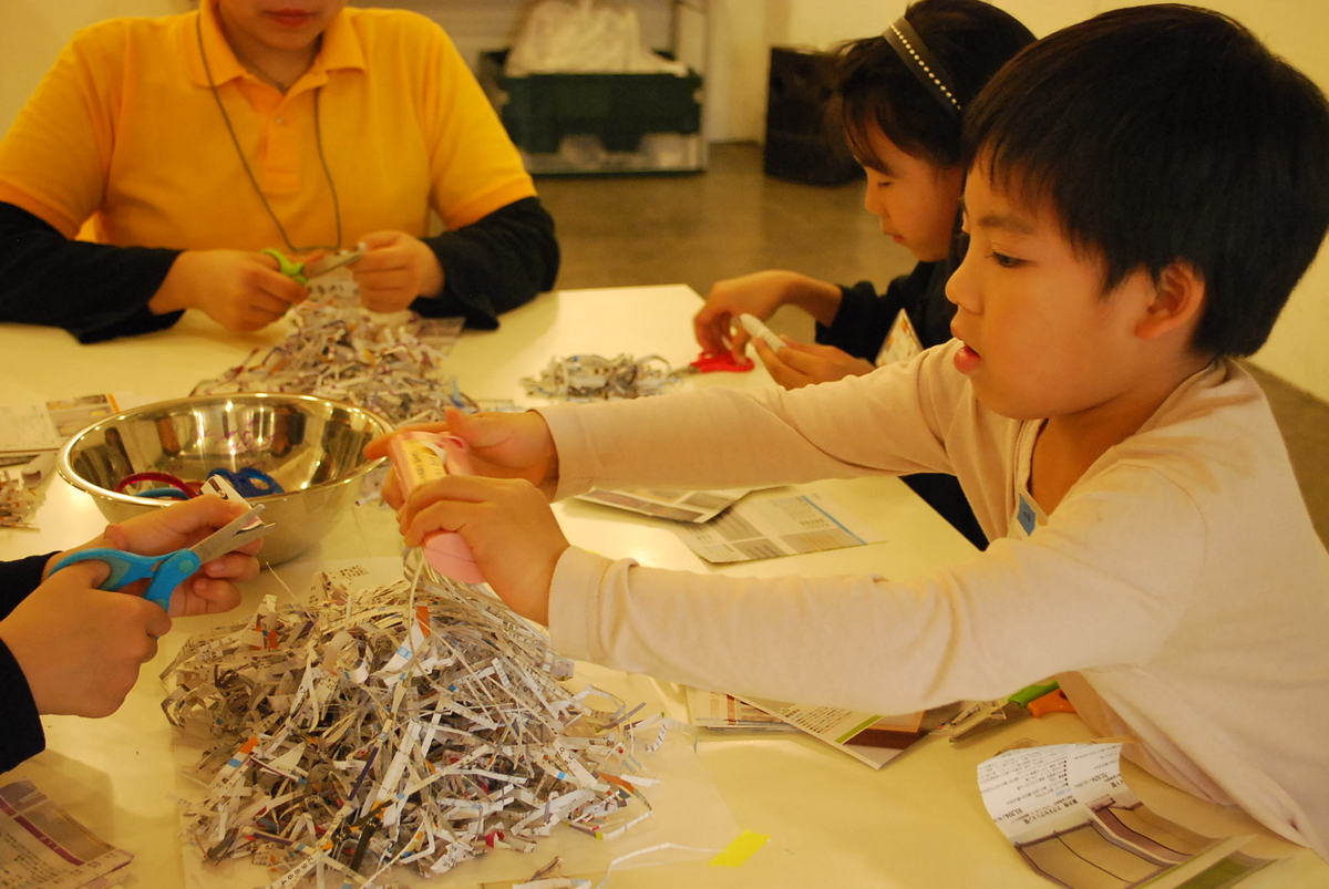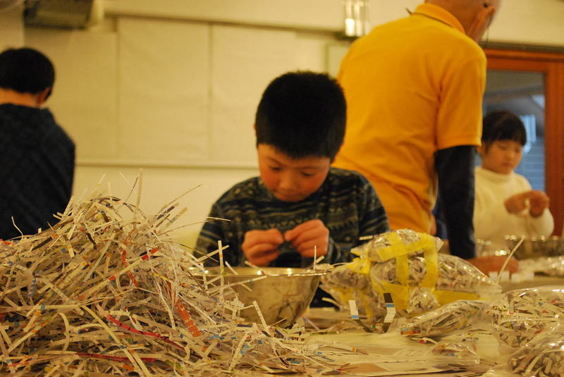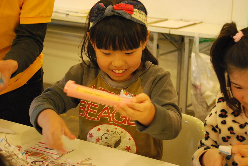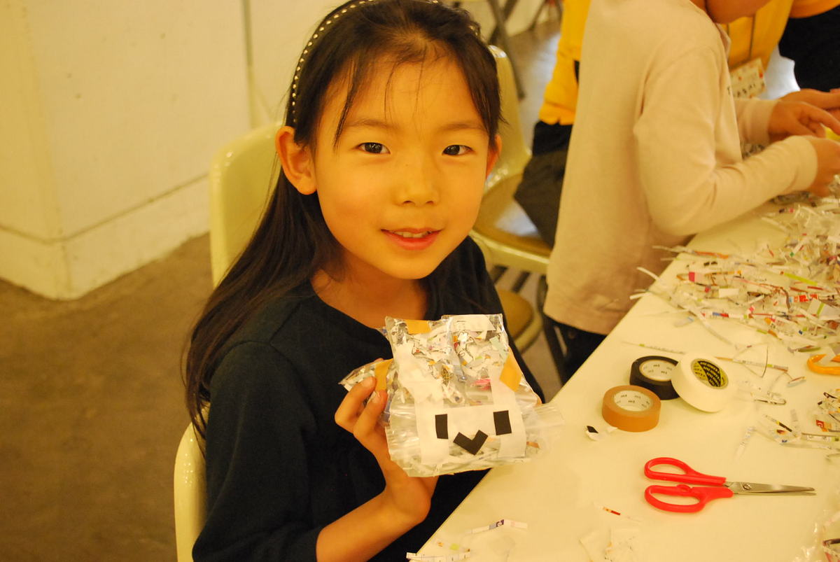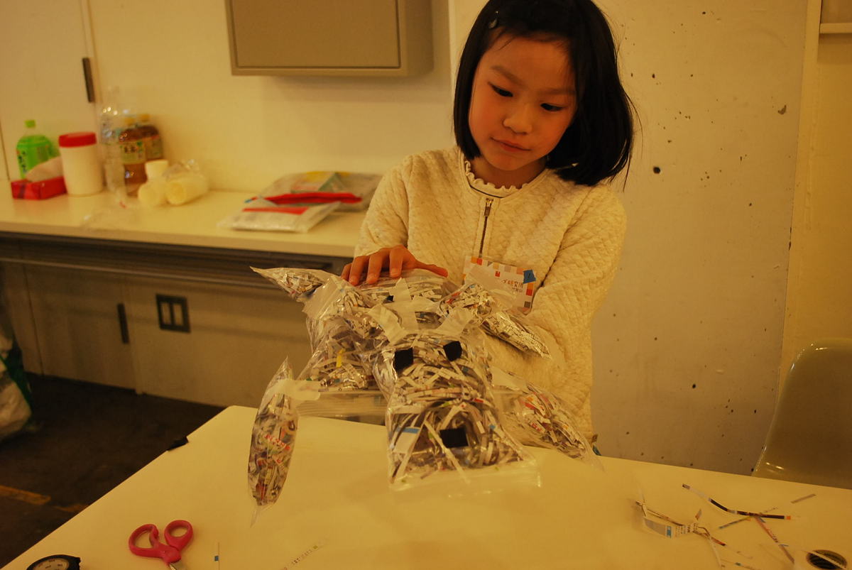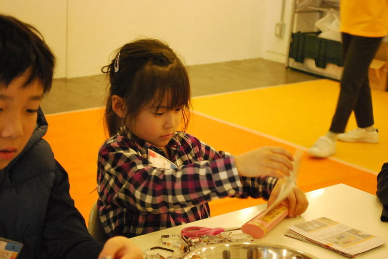 もっとつめよう、とさらに紙を切るキッズ研究員も。