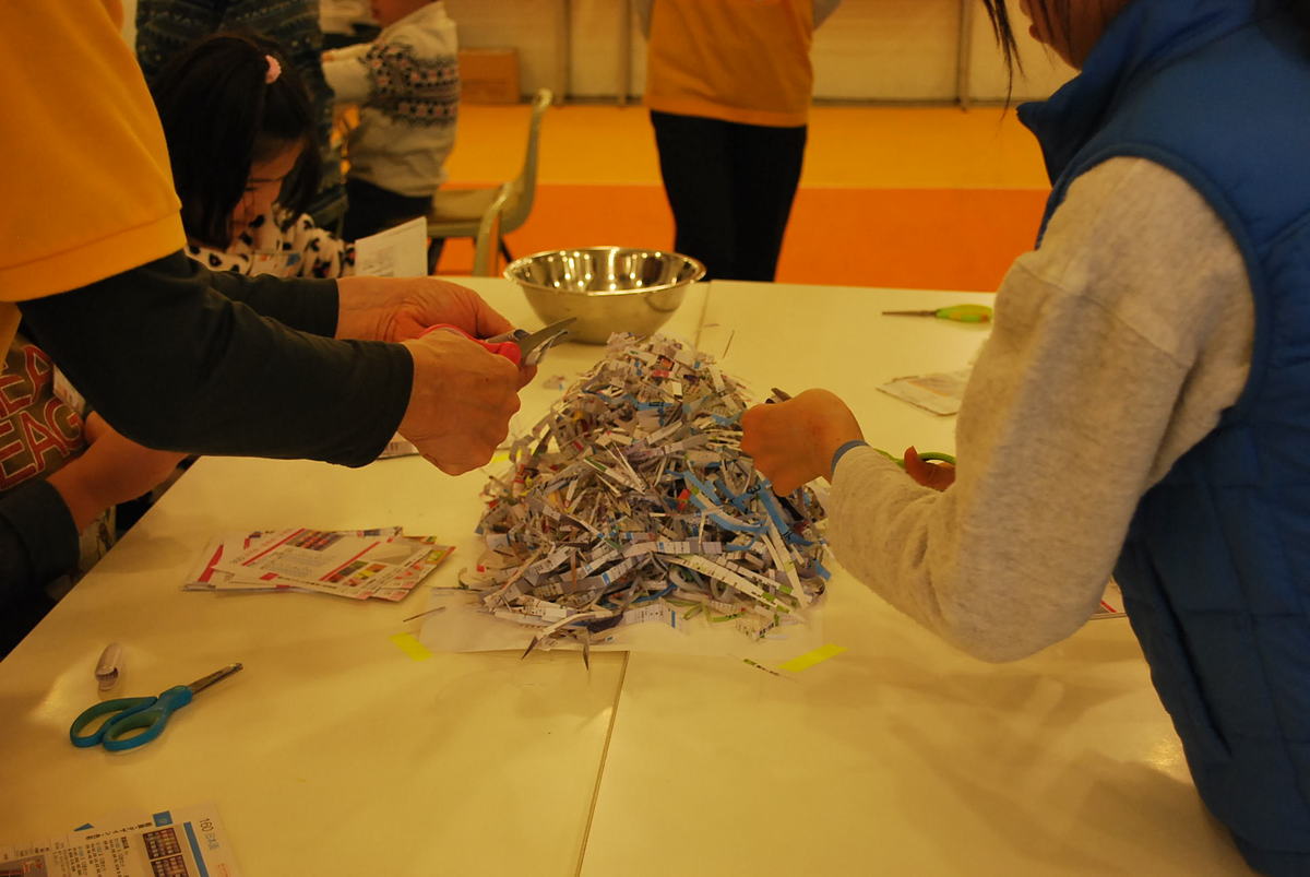 まずは材料の紙をはさみを使って小さく切っていきます。