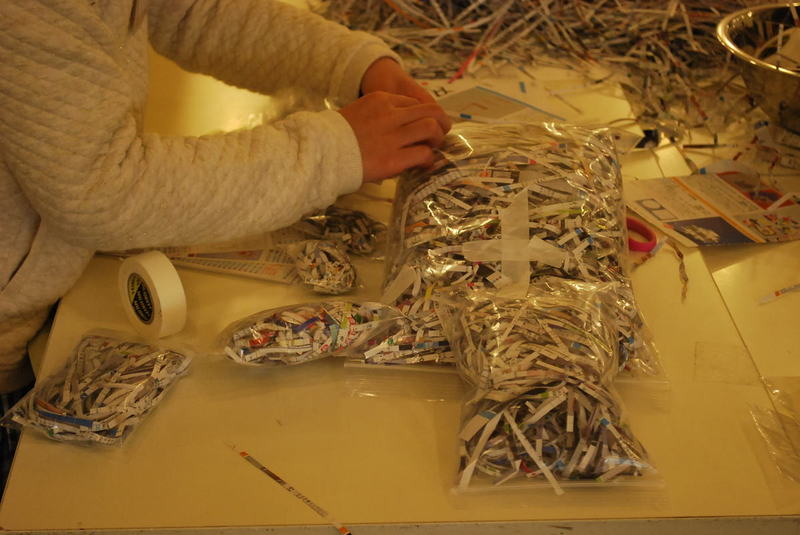 テーブルの真ん中にどんどん紙の山ができてきました。