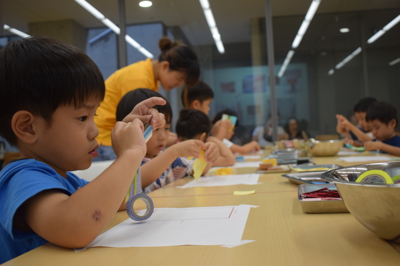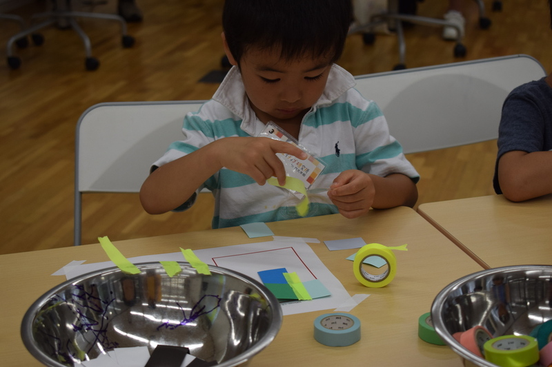 最初はテープがうまく切れなかったキッズ研究員たちもだんだんとコツがつかめてきているようです。