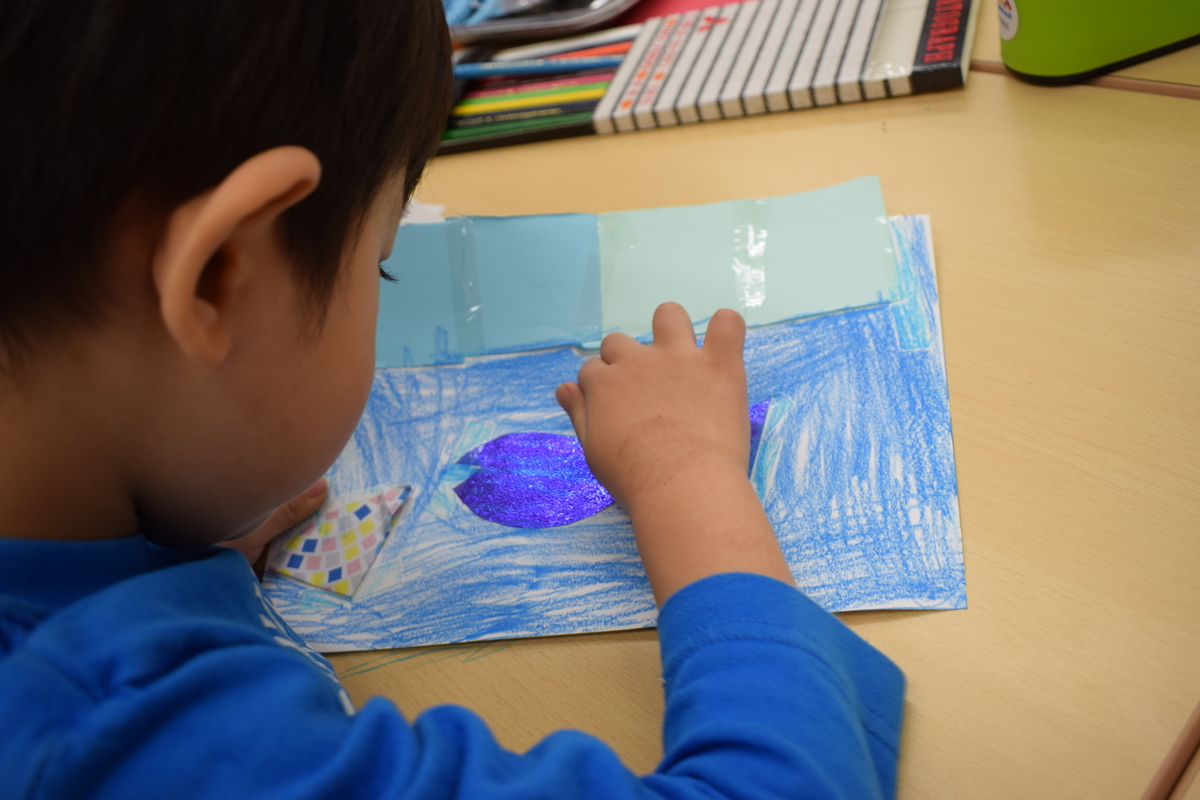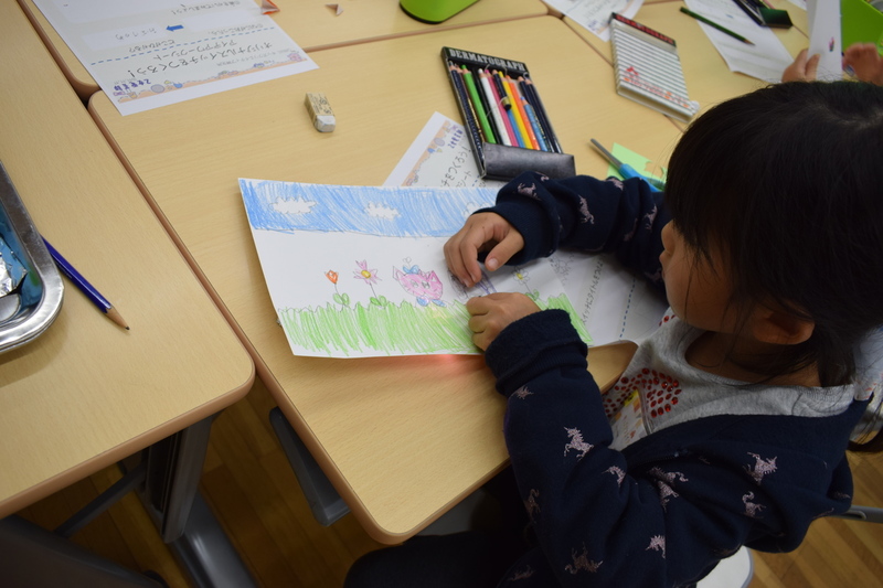 画用紙や色紙、色えんぴつも使っておはなしを作っていきます。