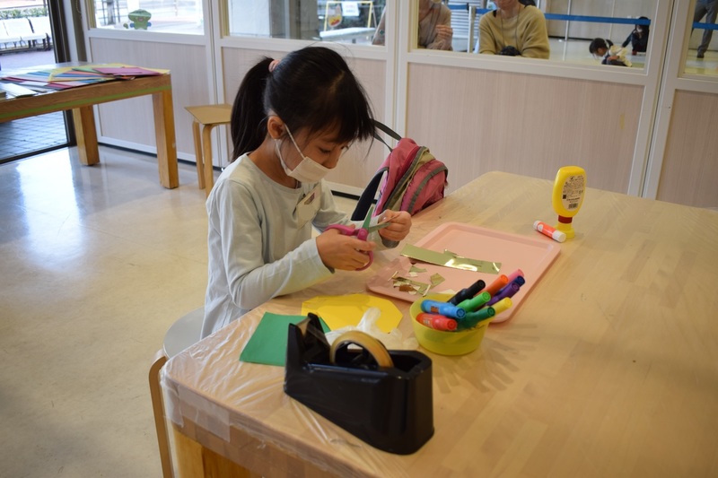 黄色、緑、そしてキラキラ光るミラー紙を慎重にカット。
