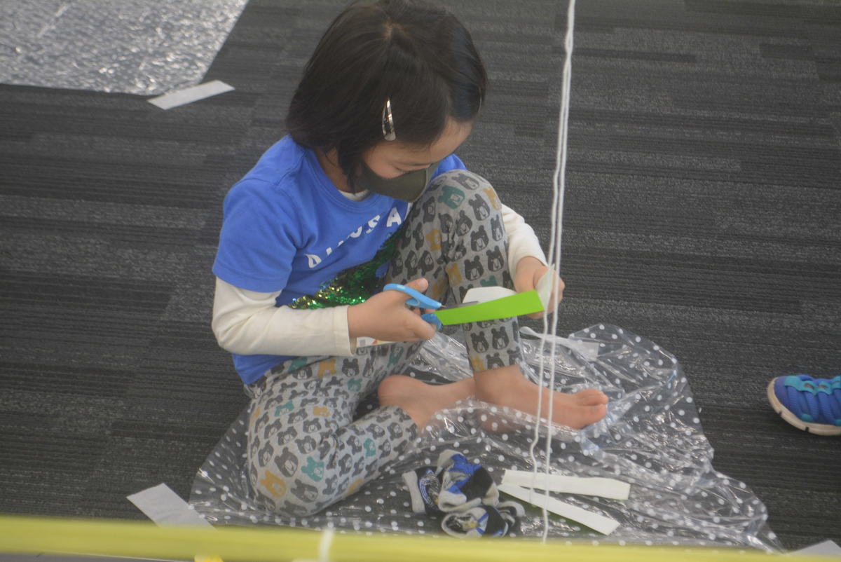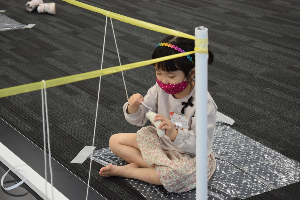 ふわふわのバナナにしたい!と毛糸を何重にもまいていく子。