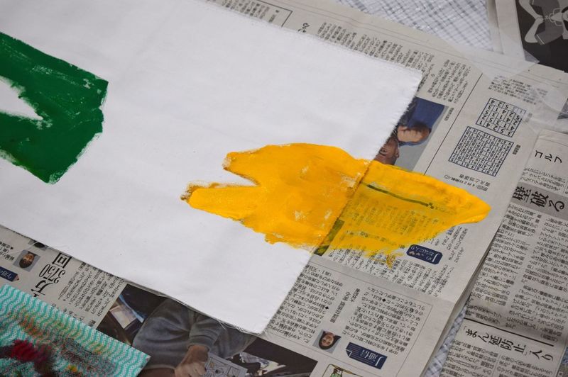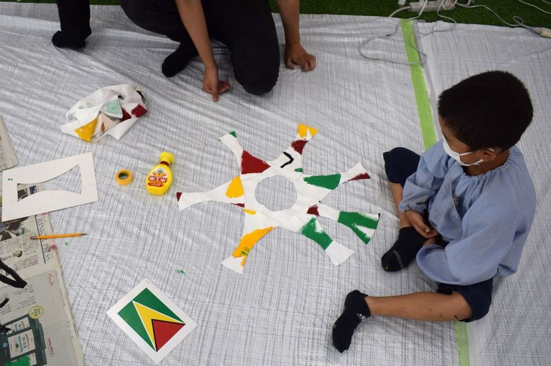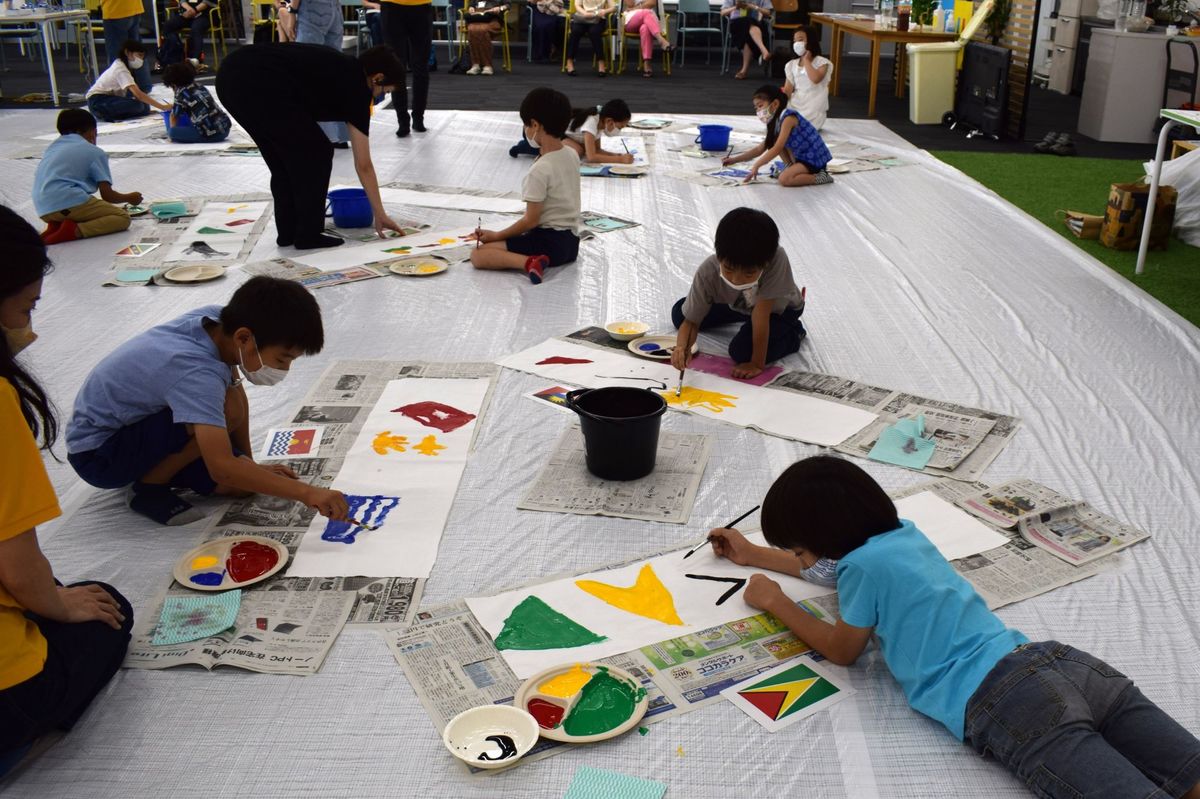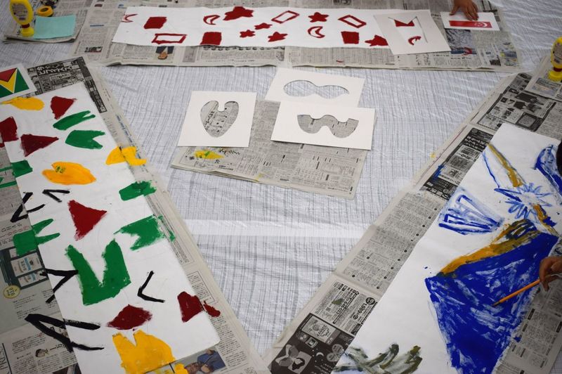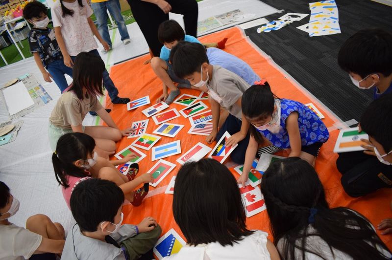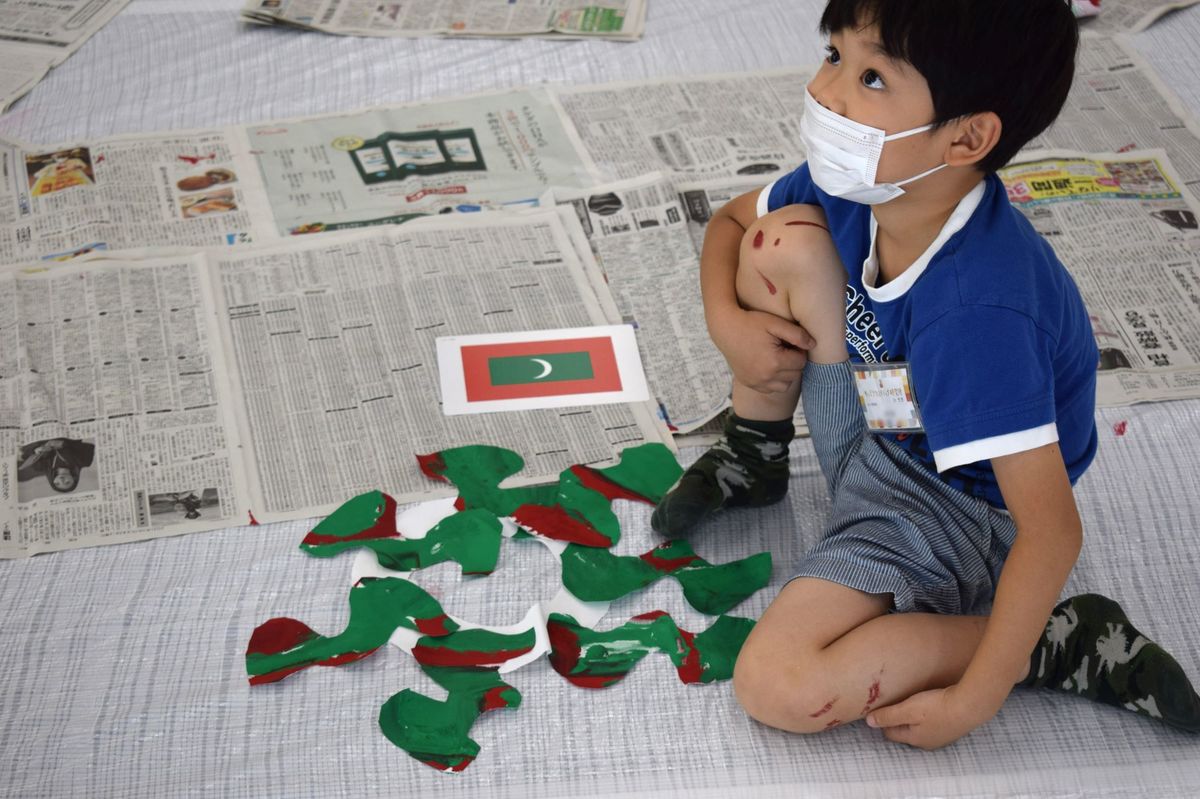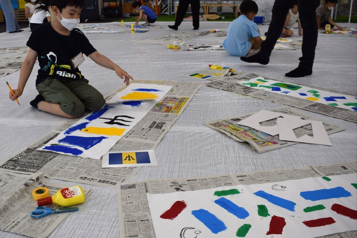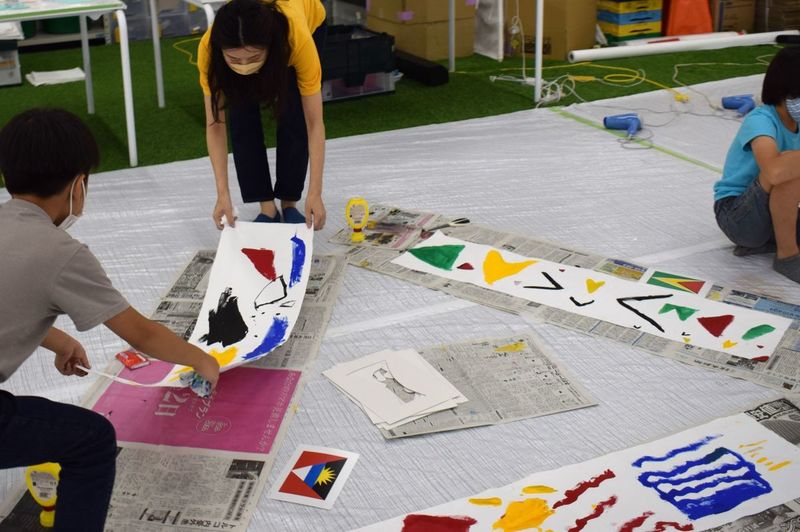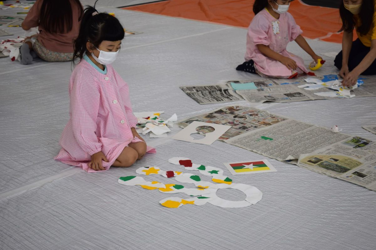 選んだ国旗の中にあるモチーフや形を、ひとりひとりの感性で抜き出し配置していきます。