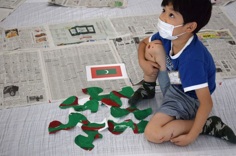 この国旗はどこの国?国旗の色と形からつけ襟を作ってみよう。