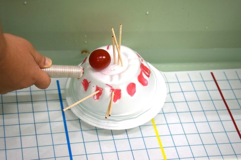 ボートに乗った野菜にネオジム磁石を近づけると、