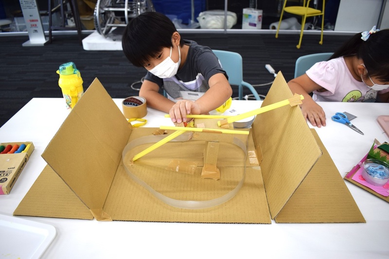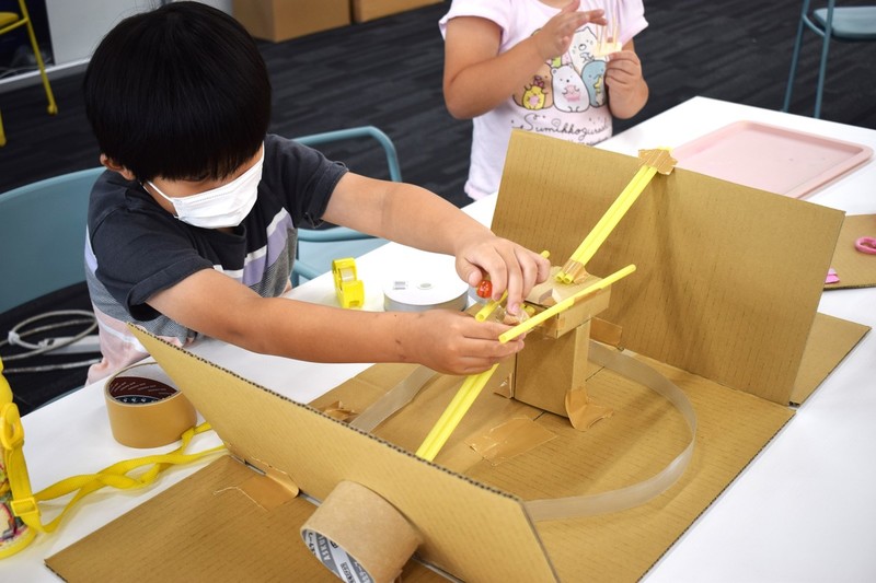 段ボールやストローを組み合わせて、めざせピタゴラスイッチ!