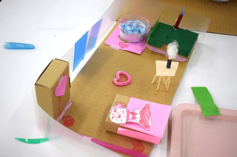 まずは、段ボールの板を組み合わせた大きな箱づくりから。