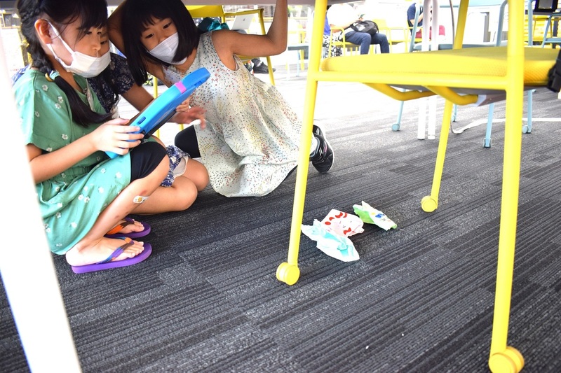 チームで相談しながら、くしゃくしゃさんを動かしてみます。