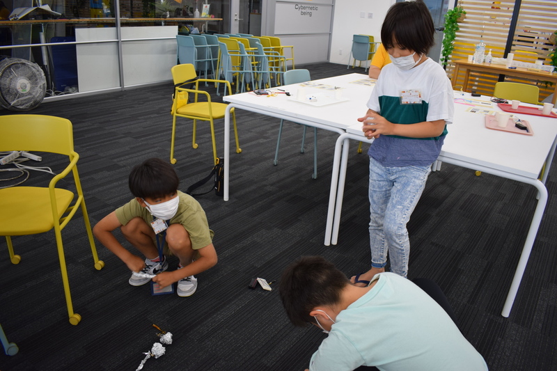 参加者同士で、LEDが光らない原因はスイッチのどこにあるのか、相談する姿もみられました。