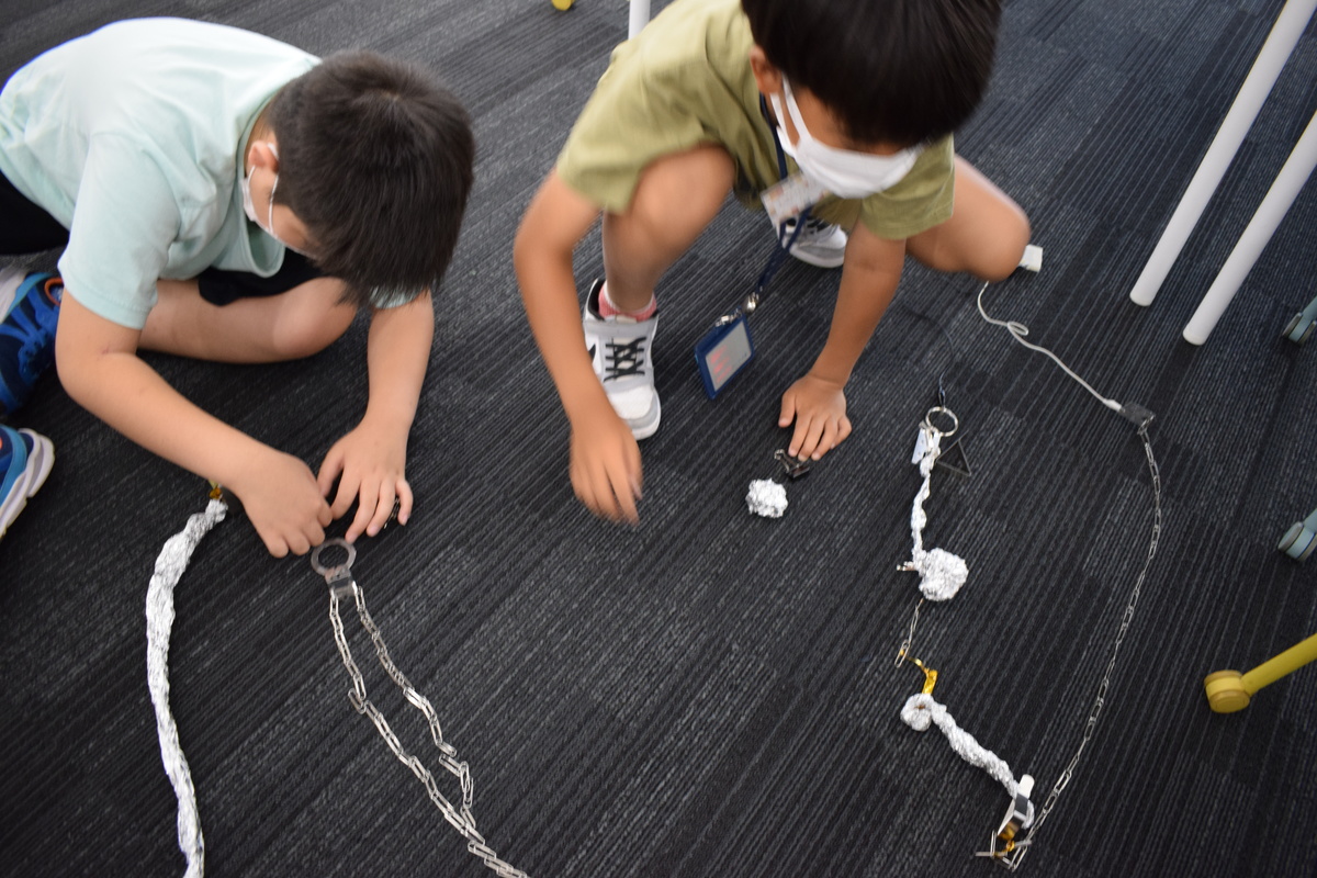 電気を通す素材をたーーーくさん集めて、ながーいスイッチづくりが大人気!