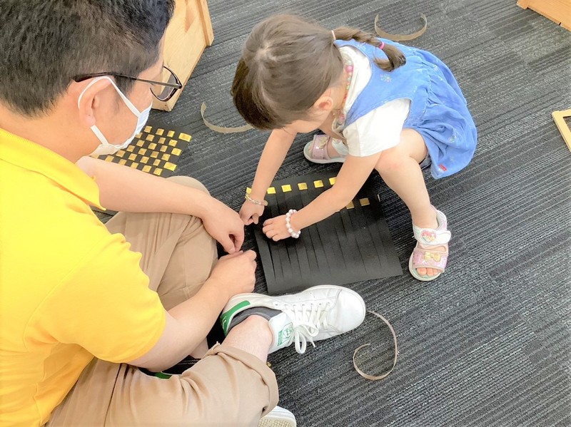 はじめてご参加の女の子、となりにいるお姉ちゃんのをまねっこしたい!