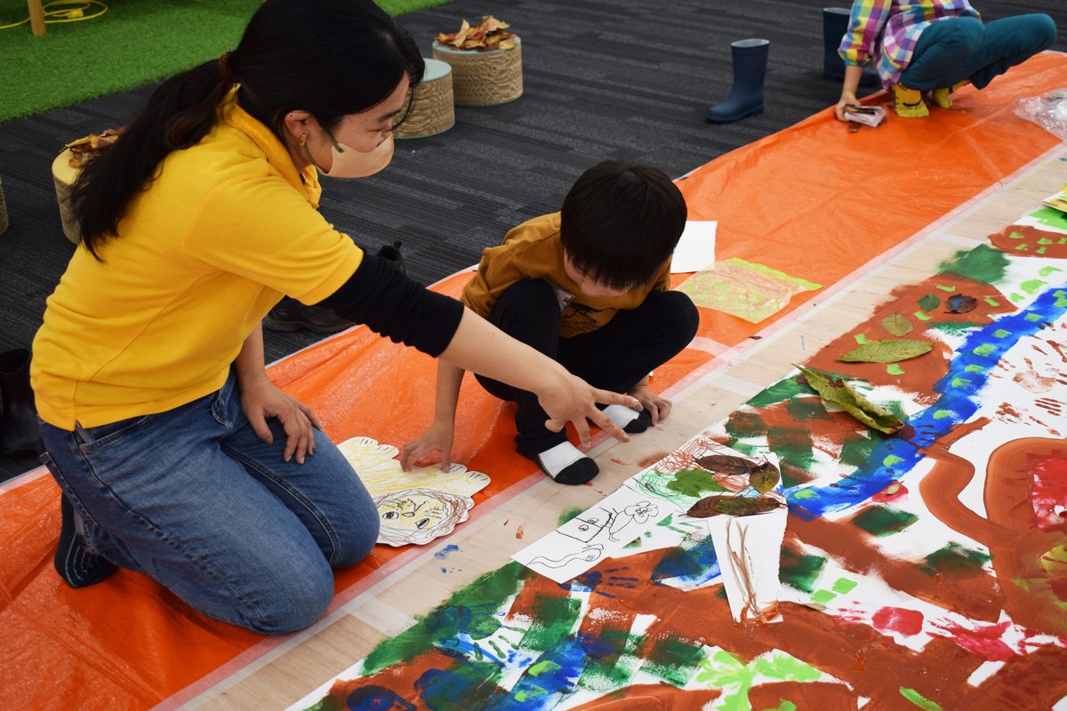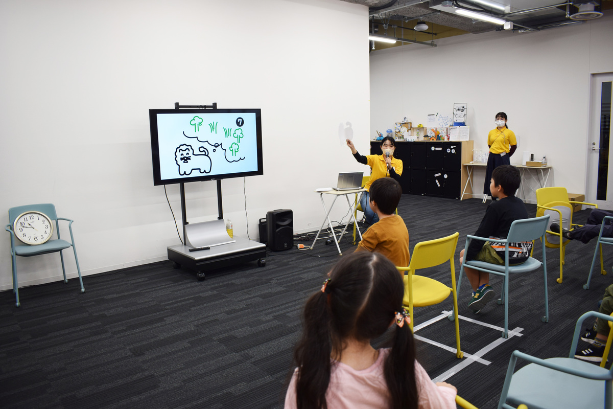 大きな画面を時には協力をしながら、キッズ研究員同士でお喋りもしながらライオンくんのお庭ができていきます。
