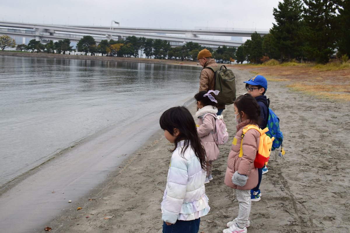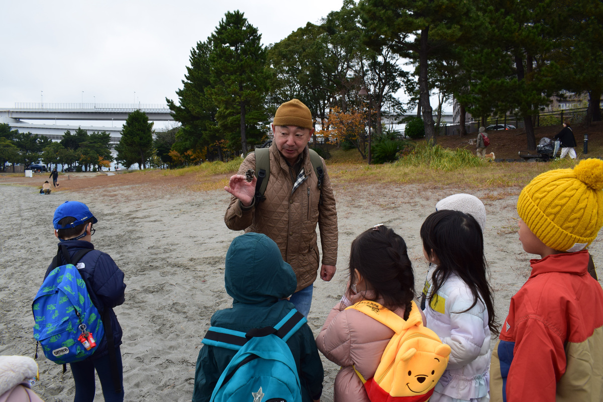 冷たい風が吹く海辺での探検でしたがキッズ研究員は元気いっぱいに秋のいきものを探せました!