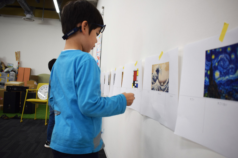 8枚の絵を壁に貼って、それぞれの絵を「すごい」「すごくない」「もやもや」で選んでいきます。