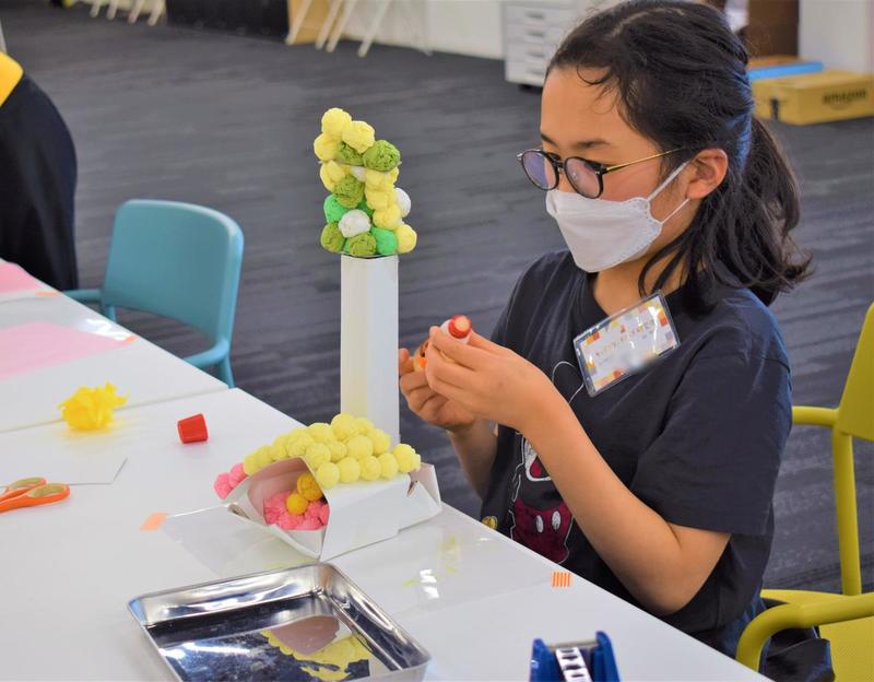 つみあげるイメージに合わせて、もくもくとたまをつくり続けたり、たまをつくってはどんどんつみあげたり。