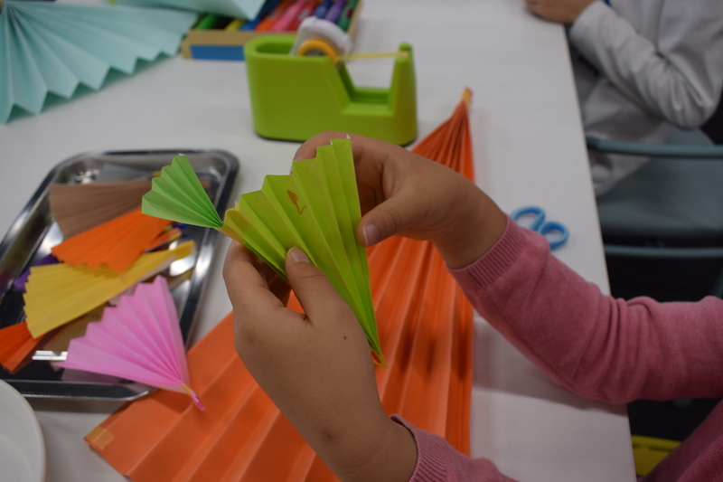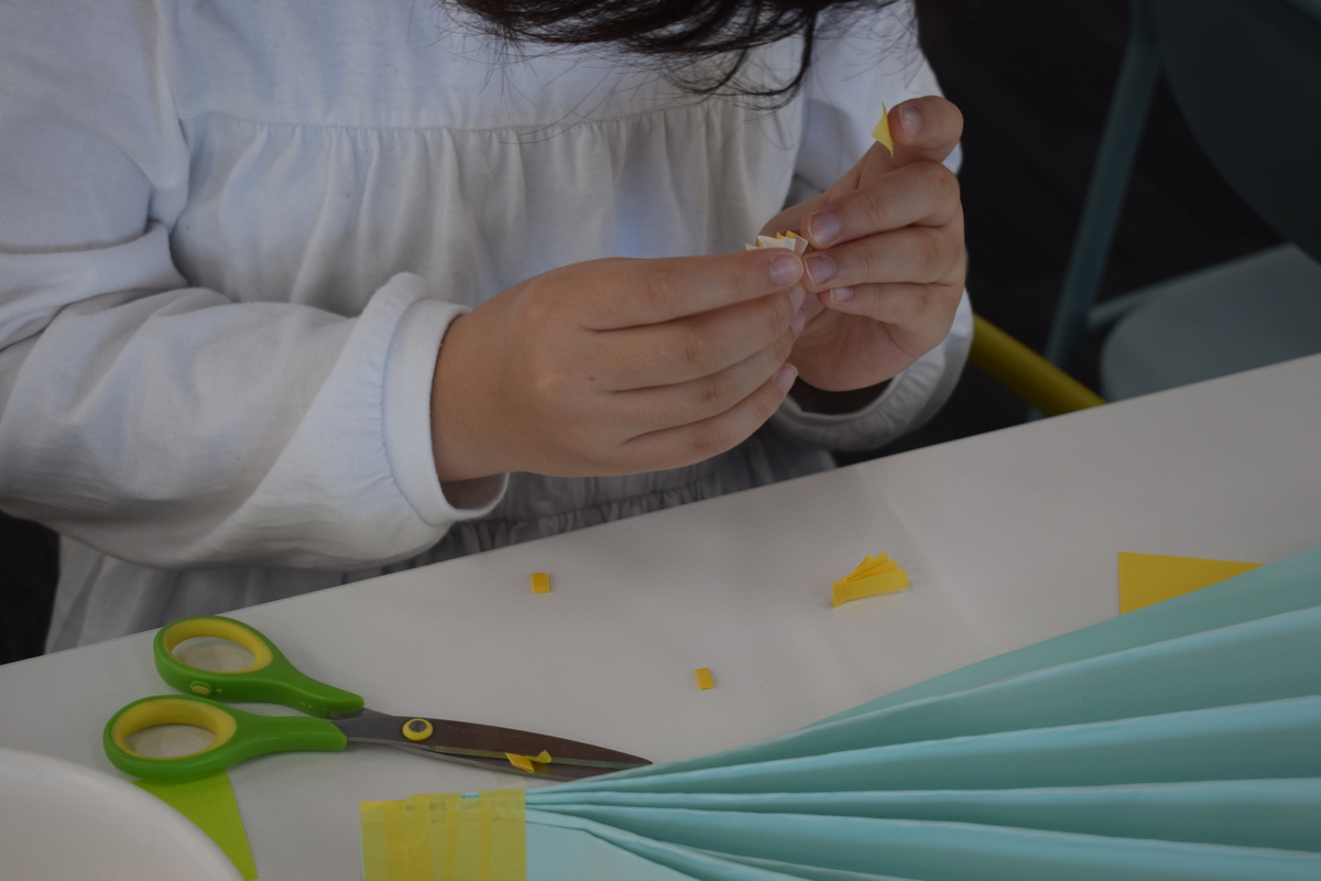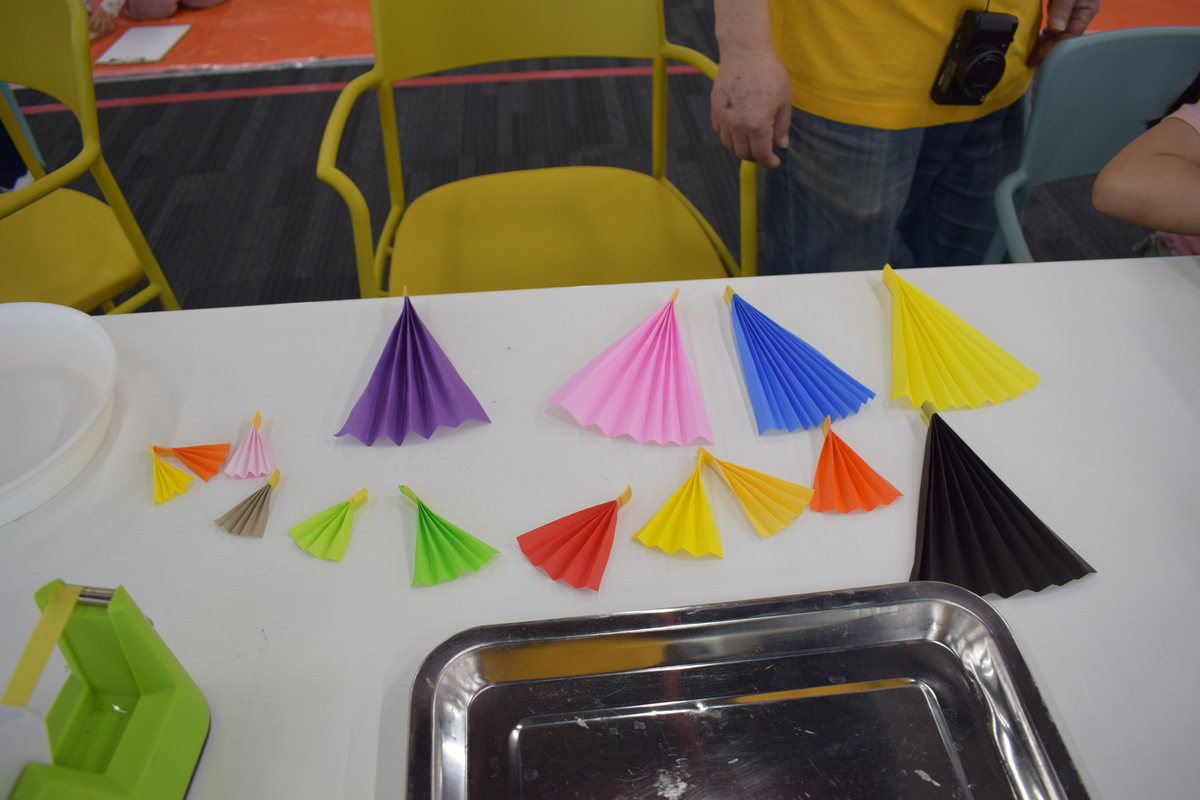 キッズ研究員の前に色とりどりのじゃばらが並んでいきます。