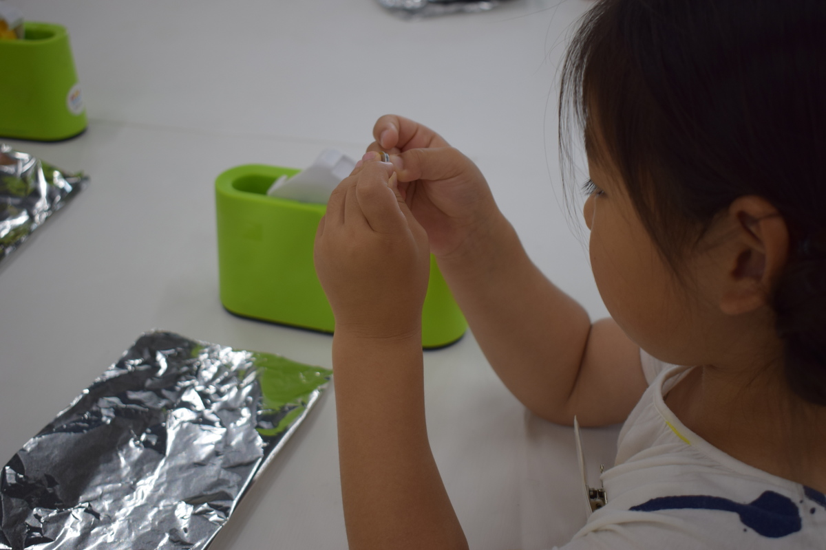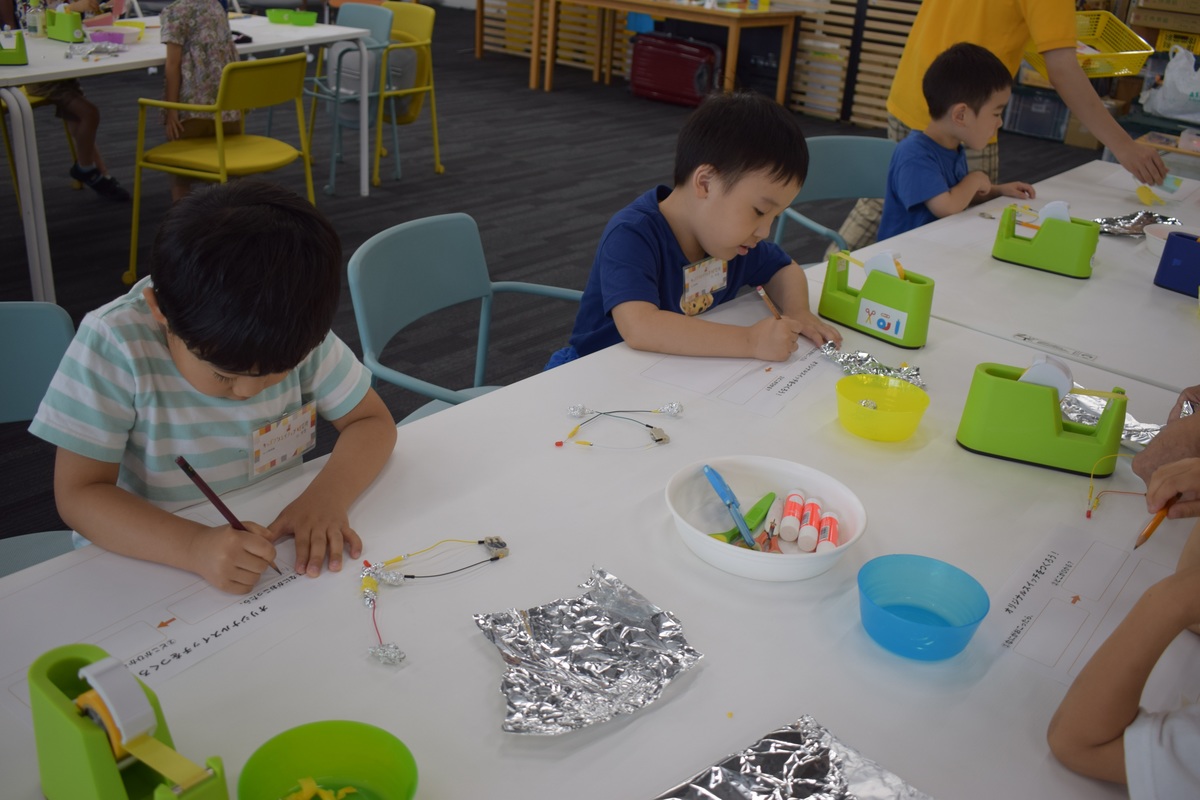 そう、今日は電気の通る道をつくってオリジナルのスイッチをつくります。