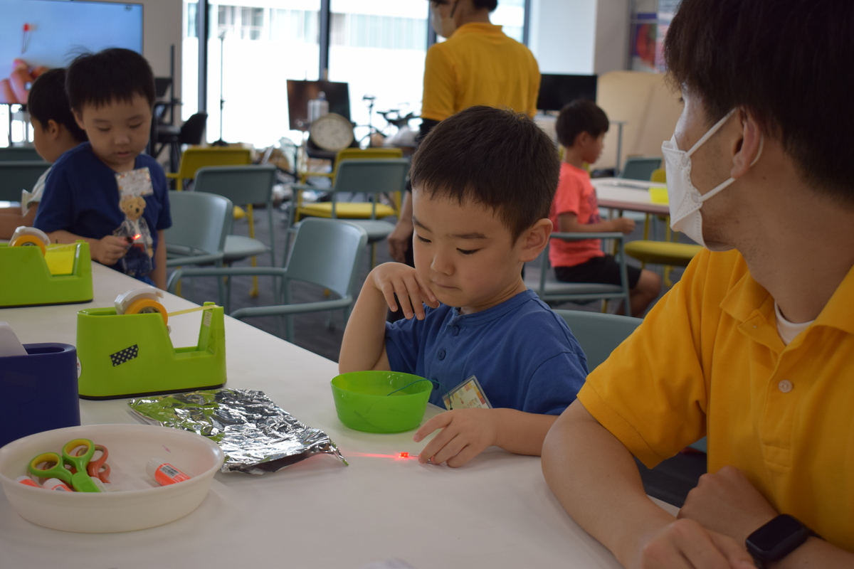 LEDが光ったら、「どうしたら?」「なにが光るか?」を考えて、