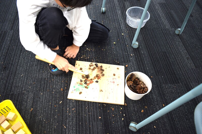 どんぐりと、金づち・・・ガツン、パリッと気持ちいい感覚。
