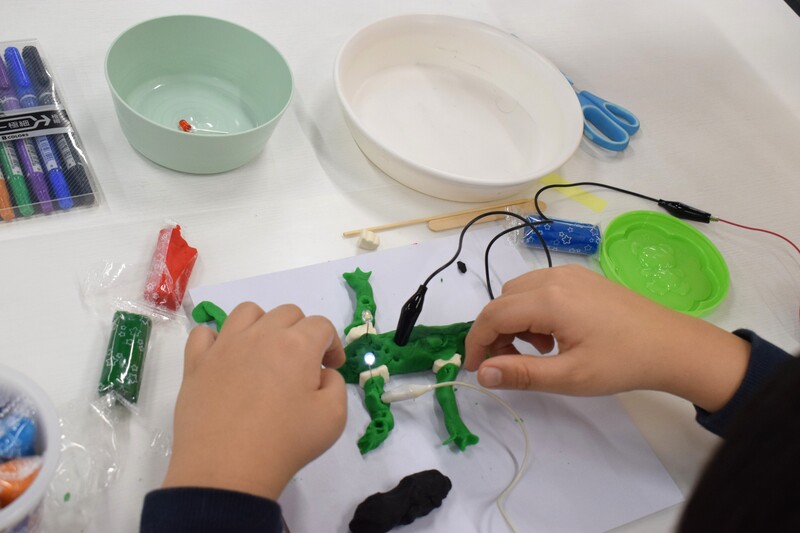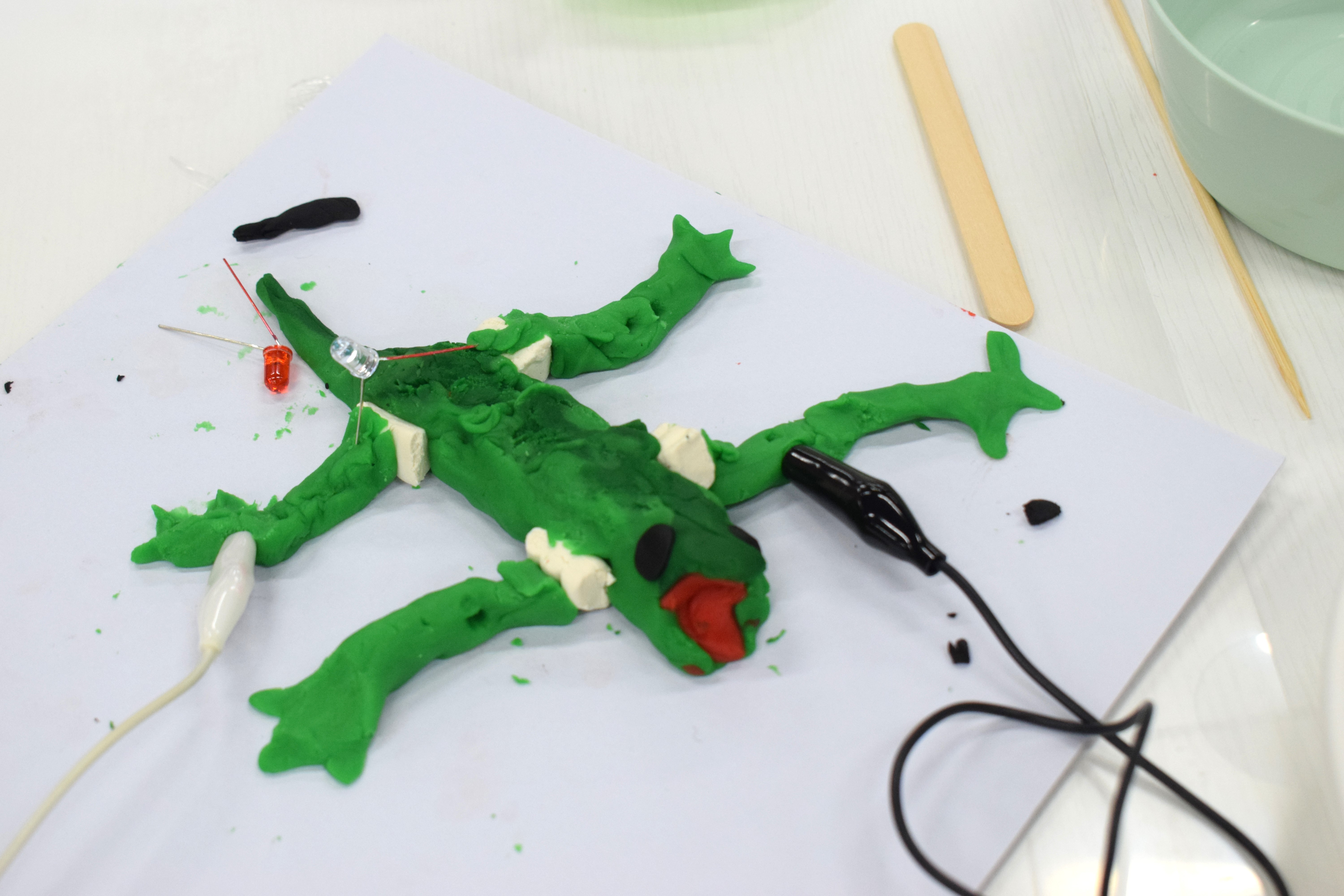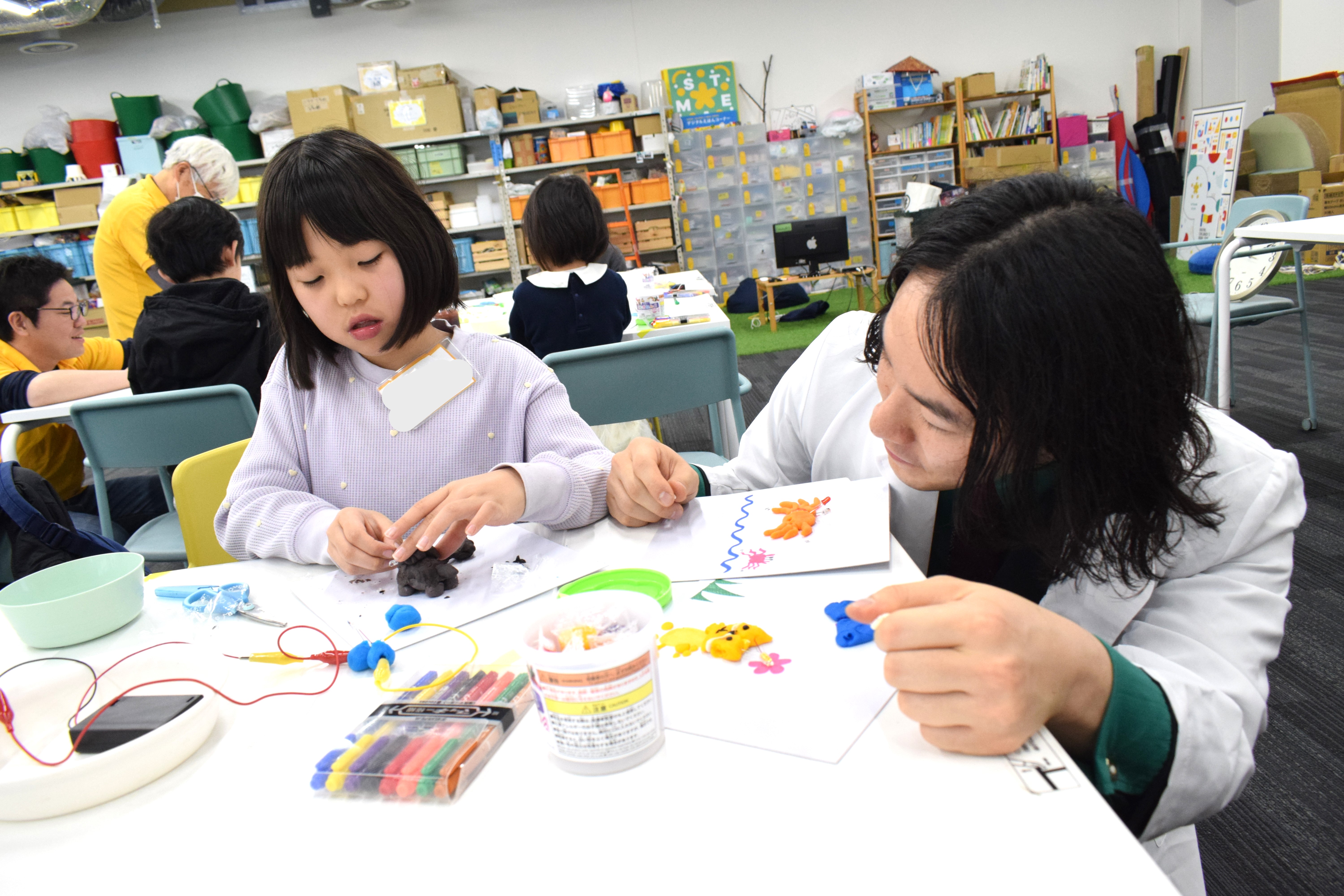 今日使った粘土は、電気を通すことができる小麦粘土と、電気を通すことができないねりけしの2種類でした。