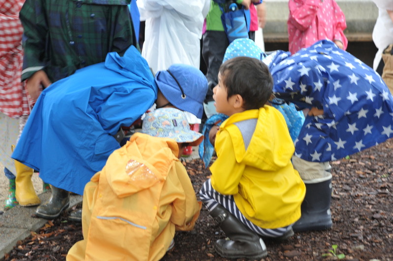 幼児クラスでは「目・鼻・耳・手」をよーくつかって自然を探しました。 小学生クラスでは自然のつながりを探してスケッチもしました。