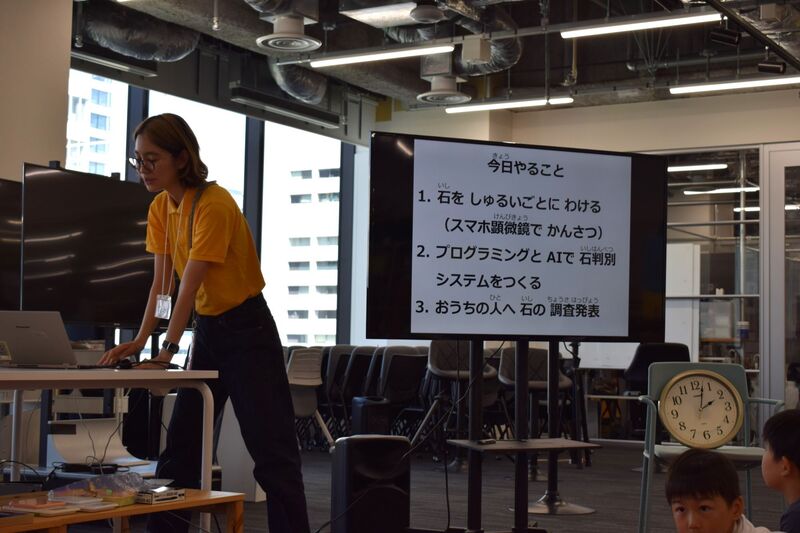 それでは、プログラミングクラス「AI×プログラミングで石判別システムをつくろう!」(プログラム提供:OtOMO倉本大資)の様子をお伝えします!