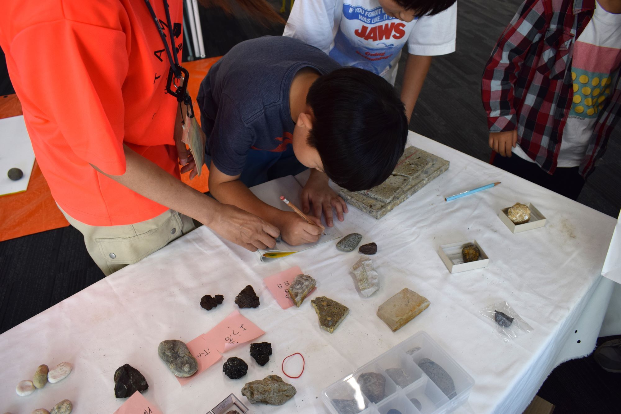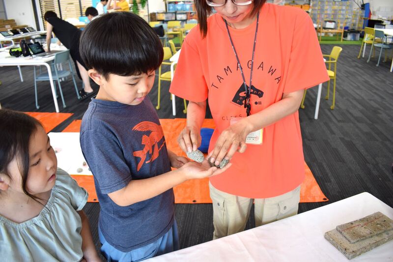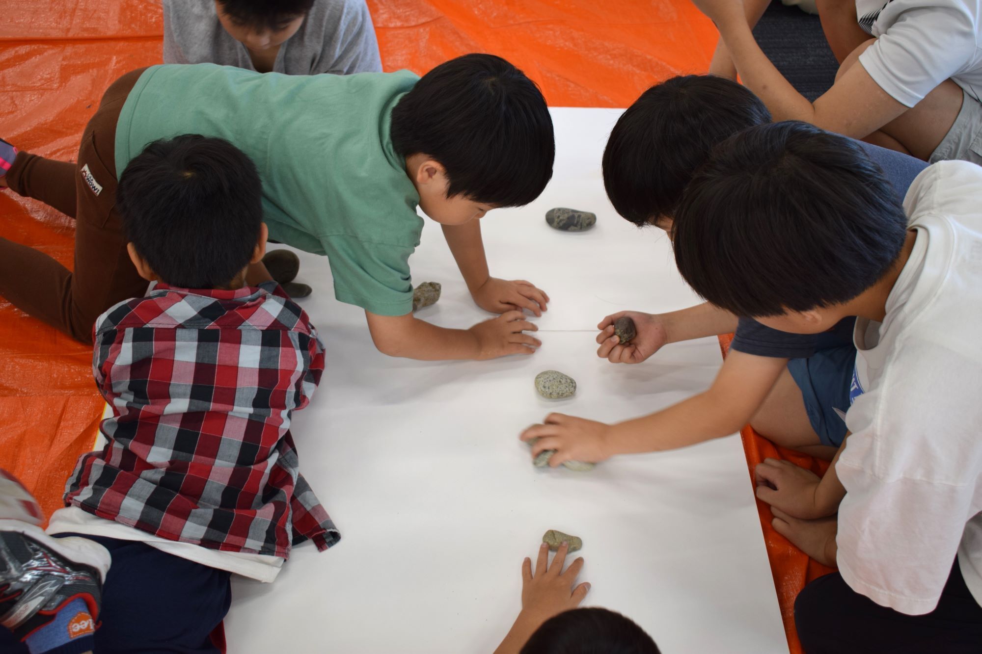 (*このワークショップは、調布市多摩川自然情報館解説員の竹内江利子さん(石博士)にご協力いただきました)