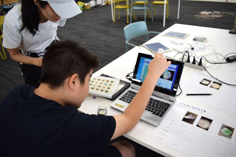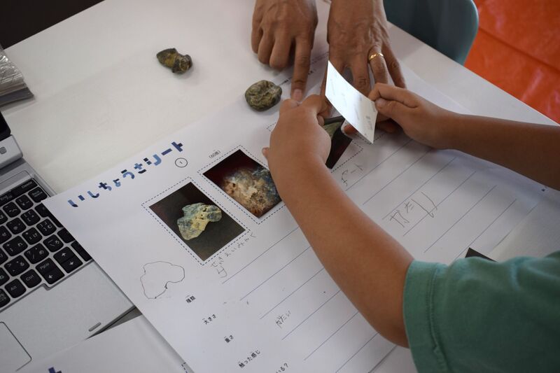 自分でもってきた石を石博士に聞きながら、システムに取り入れる様子も見られました。