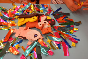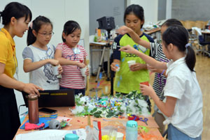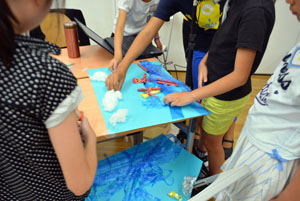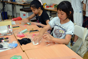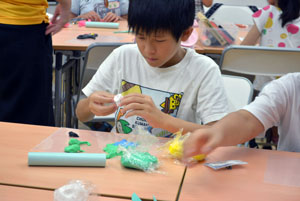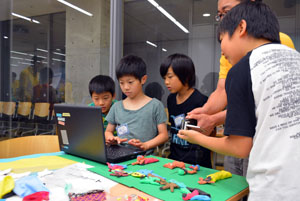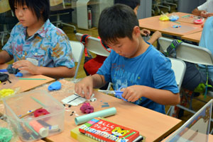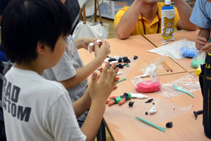 ふだんは動かないもの”いのち”を吹きこんで、動いてみえるようにするのがアニメーション。そして、クレイアニメもそのひとつ。クレイ(ねんど)でつくったキャラクターが動いたり、しゃべったりするアニメーションです。 「サマーキャンプ クレイアニメ講座」では、グループにわかれて、協力して制作しました。