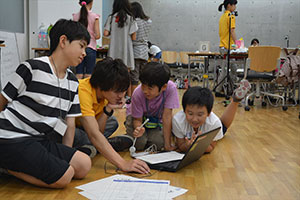 どんな作品をつくろうかな!?グループのみんなといっしょに、作品のストーリーやキャラクターを考えます。 |