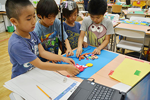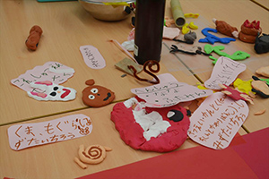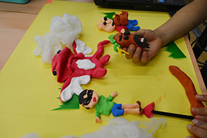ふだんは動かないもの”いのち”を吹きこんで、動いてみえるようにするのがアニメーション。そして、クレイアニメもそのひとつ。クレイ(ねんど)でつくったキャラクターが動いたり、しゃべったりするアニメーションです。「東大サマーキャンプ クレイアニメ講座」では、そんなクレイアニメをグループにわかれて、協力して制作しました。